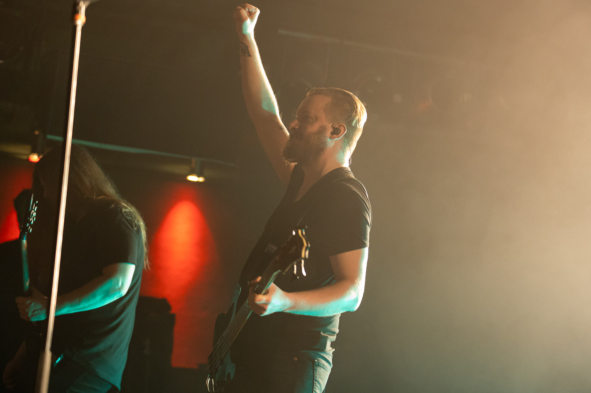 „Austerity“ und „Colossal Shade“ kommen vom neuen Album Sky Void Of Stars, leiden aber unter Soundproblemen und zünden nicht wirklich bei mir. Das scheint auch im Publikum der Fall zu sein. Das hohe Niveau der vorherigen Isländer ist plötzlich nicht mehr zu spüren. „Leathan“ als dritter Song und alter Klassiker zündet da schon mehr und lässt einen Hoffnungsschimmer auflodern. „Deliberation“ folgt und lässt die Die Hard Fans frenetisch mitsingen. Das Set der Schweden schwimmt dann ein wenig zwischen in der Musik abtauchen und sich treiben lassen. „My Twin“ sorgt für einen positiven Ausreißer und wieder ordentlich Mitsing-Unterstützung des Publikums. Mit „July“ als erste Zugabe folgt ein weiterer Klassiker. Den Abend rettet dann der letzte Song aus der Setlist. „Evidence“ als einer meiner Lieblingshits der Band lassen die anfänglichen Schwächen des Auftritts vergessen. Auch das Publikum gibt noch einmal alles und geht Sänger Jonas zur Hand bzw zur Stimme, bis wir „walk out of the picture“.