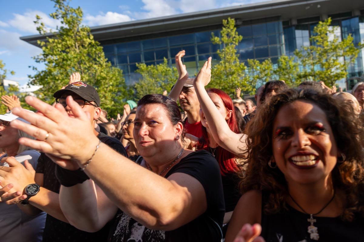 Als wir das Konzertgelände betreten, bin ich ernüchtert. Es ist viel leerer als bei den Hollywood Vampires - nur etwa 2500 Zuschauer zu Beginn, aber später werden es bestimmt 4000. Die Lord of the Lost haben es geschafft, vor allem echte Fans anzuziehen, und die Stimmung ist super!