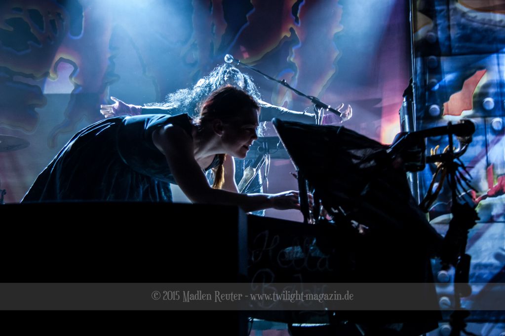 Bereits zwei Stunden vor Einlass habe ich mich vor der Halle eingefunden. Zu meiner großen Überraschung war noch niemand dort. Aber hey, so hatte ich wenigstens genug Platz, um vor meiner Nervosität wegzulaufen. Gratis dazu gab es dann auch noch einen ziemlich spaßigen Soundcheck mit anzuhören. „Scare Force One“ in Gepfiffen ist durchaus sehr interessant. Nach und nach hatte sich dann eine kleine Schlange gebildet. Nach Einlass bin ich dann direkt zur rechten Seite der Bühne geflitzt und habe mich vor Gitarrist Amen und Keyboarderin Hella niedergelassen. Diese Barrikaden sind echt ziemlich hoch.. Oh, Moment, ich bin einfach nur extrem klein, da war ja was. Wie dem auch sei, danach gings erst mal zum Merch-Stand. Immerhin brauchte ich ja noch ein paar mehr T-Shirts. Ein paar lockere Pläuschchen später ging es dann auch schon mit der ersten Vorband los.