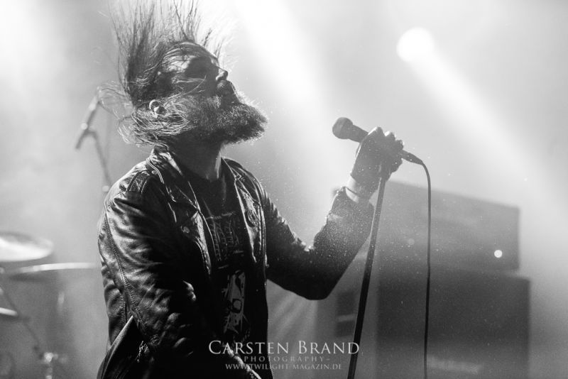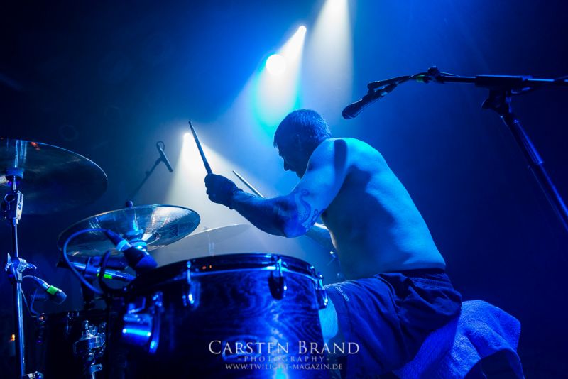 MANTAR hingegen stehen als Headliner nicht nur stilistisch komplett für sich selbst. Hanno und Erinc haben mit ihrem dritten Album "The Modern Art Of Setting Ablaze" noch einmal einen gewaltigen Schritt nach vorn machen können und den ohnehin schon einzigartigen Stil aus (Black)Metal, Stoner Rock, Punk/Crust und Noise weiter verfeinert. Und das zieht an. Zwar ist das Musikzentrum nicht ausverkauft aber rappelvoll und das an einem Montag Abend. Vor der Bühne ist kaum noch ein Durchkommen, als Mantar loslegen. Die selbsternannten Langzeitarbeitslosen haben es eigentlich nicht nötig, ihr Publikum mit Whisky zu bestechen. Trotzdem nimmt Hannover die Verkostung dankend an, während das Duo, das sich auf der Bühne wie gewohnt gegenüber steht, mit "Age Of The Absurd", "Seek + Forget", "Dynasty Of Nails", "Teeth Of The Sea" oder "Midgard Serpent" u. a. die eigentlichen Argumente liefert, die Halle in Schutt und Asche zu legen. Natürlich liegt auch hier der Schwerpunkt auf dem Material vom aktuellen Album obwohl natürlich auch die Gassenhauer der ersten beiden Scheiben nicht zu kurz kommen und sogar erfreulich viel vom Debut gespielt wird. Es dauert nicht lang bis die ersten Diver über das Publikum schweben, wobei Hanno die Crowd explizit dazu animiert, den Surfern das Erlebnis so nachhaltig wie möglich zu machen. "Era Borealis" leutet das Finale ein, das von "White Nights" und "Beserkers Path" gekrönt wird. Zugaben gibt´s nicht bei einem starken Gig, obwohl ich auch Mantar schon wesentlich intensiver gesehen oder erlebt habe.