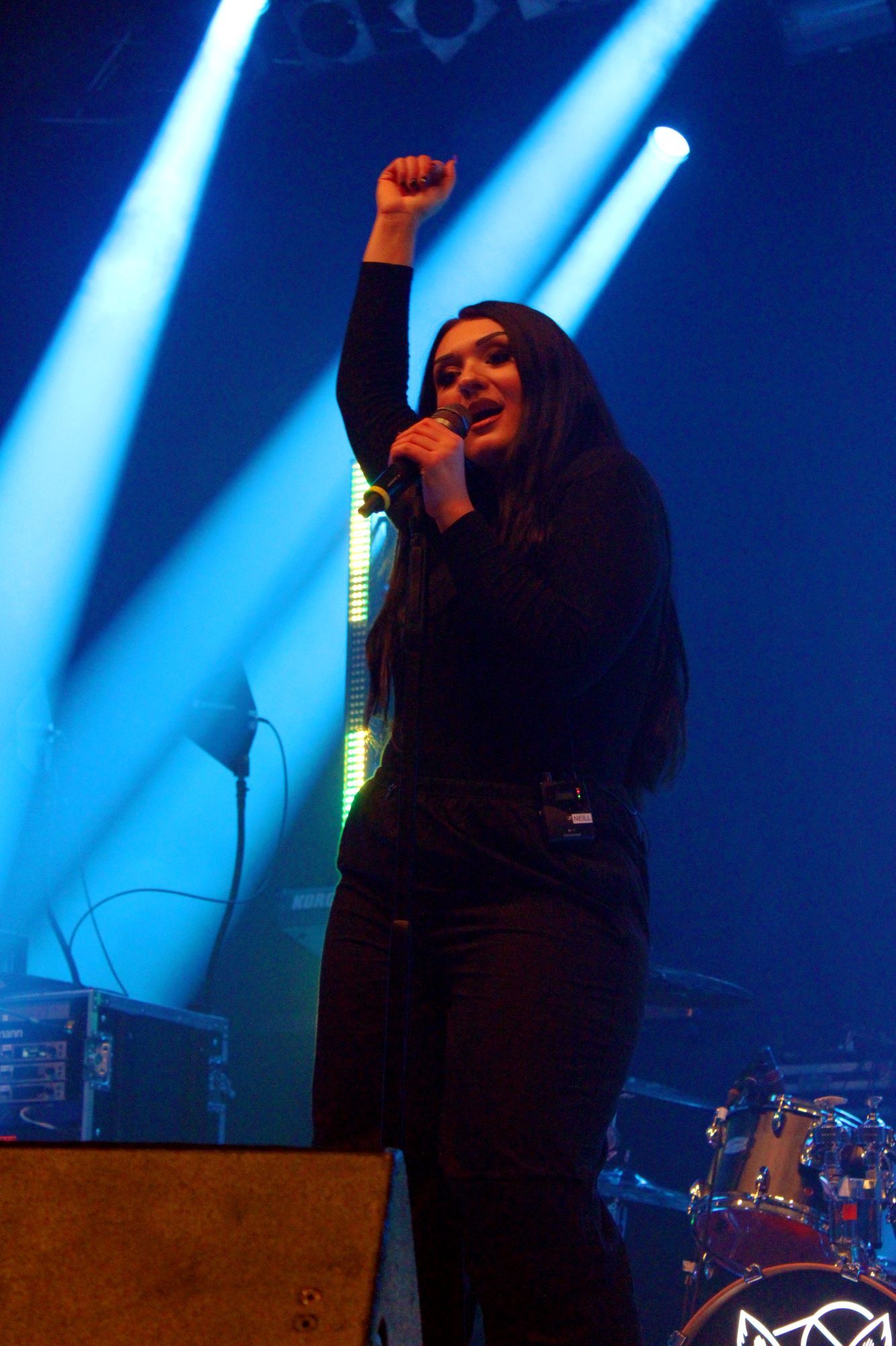Die Fragen stellen wir aber erst einmal zurück, zuerst wurde uns von BÖSE FUCHS eingeheizt. Die Band hat vor kurzem ihr Debüt veröffentlicht und hat den Abend sehr gut genutzt, live mit ihrem sehr abwechslungsreichen Sound einen Eindruck zu hinterlassen. Growls, Shouts, glockenheller Gesang, harte Riffs und Dubstep Breakdowns, hier war einiges geboten und das hat durchaus Spaß gemacht. Ausklingend mit einem Hypa Hypa Cover von Electric Callboy leitet uns BÖSE FUCHS um Growlerin, Gitarristin, Keytaristin und Bandkopf Valeria Ereth zum heiß erwarteten Auftritt von Oomph über.