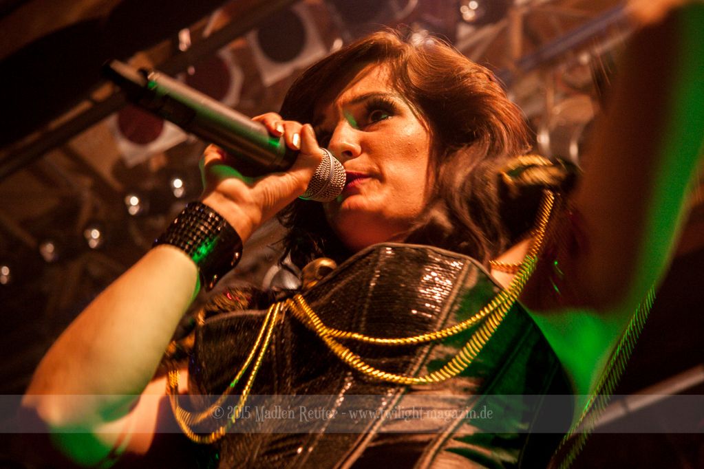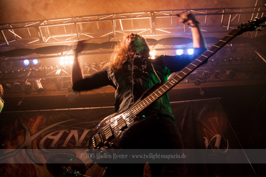 So konnte bereits XANDRIA von einem höchst motivierten Publikum profitieren. Sängerin Dianne van Giersbergen weiß ihre charmante Art gekonnt einzusetzen, und wickelt damit die Menge um den Finger. Aktives Bangen und Hüpfen standen auf der Tagesordnung, sowohl bei der Band selbst, als auch vor der Bühne. Ich war positiv überrascht, denn vorab wusste ich nicht so recht, was mich erwarten würde. Die Fronterin hat ihre Stimme vollends unter Kontrolle und ernsthafte Ohrenschädigungen bleiben somit aus – Puh! Auch die Saitenfraktion interagierte freudig erregt mit dem Publikum, und untereinander.