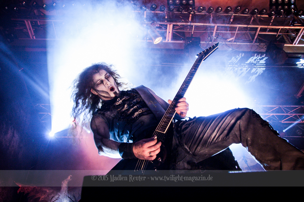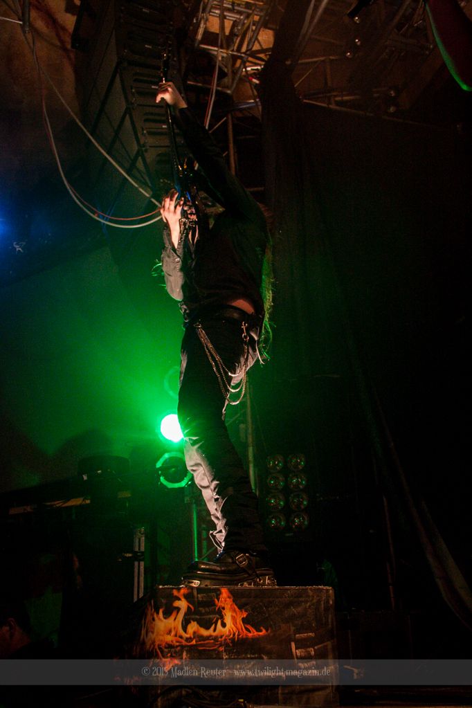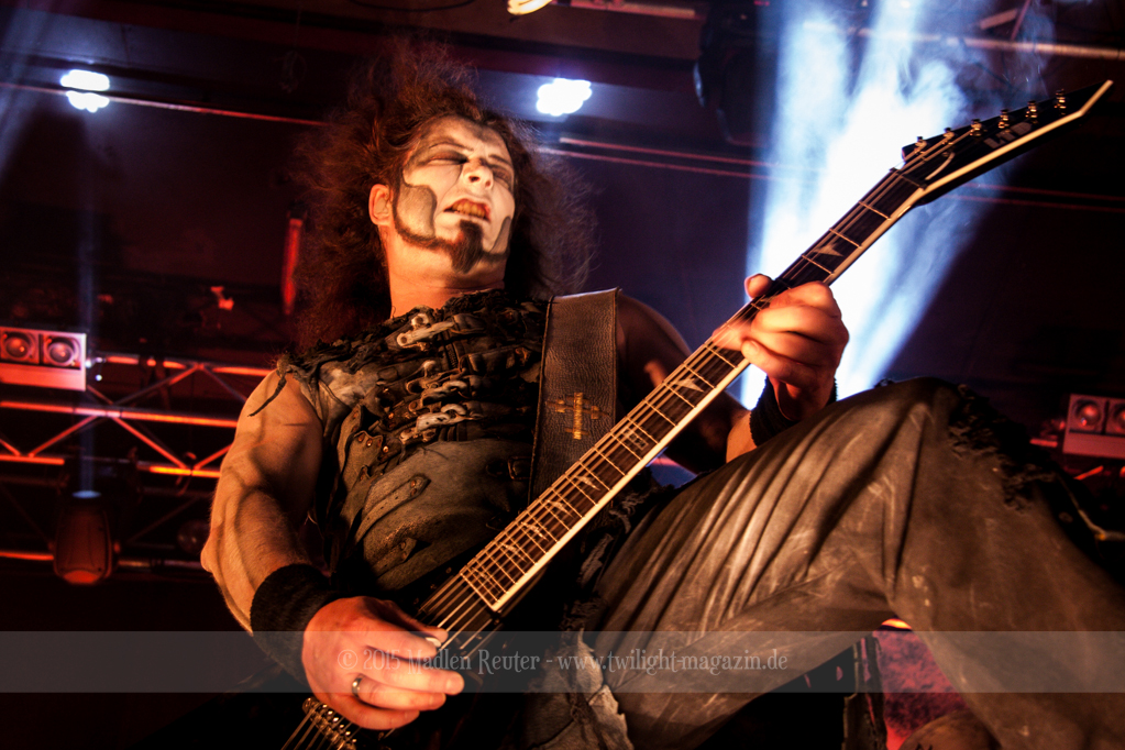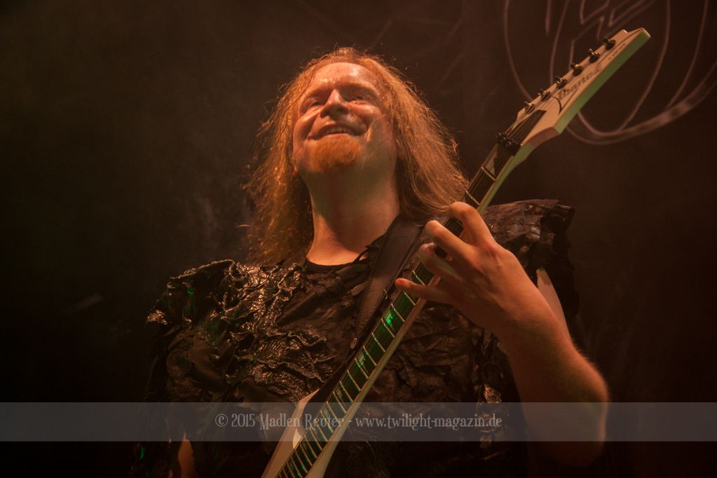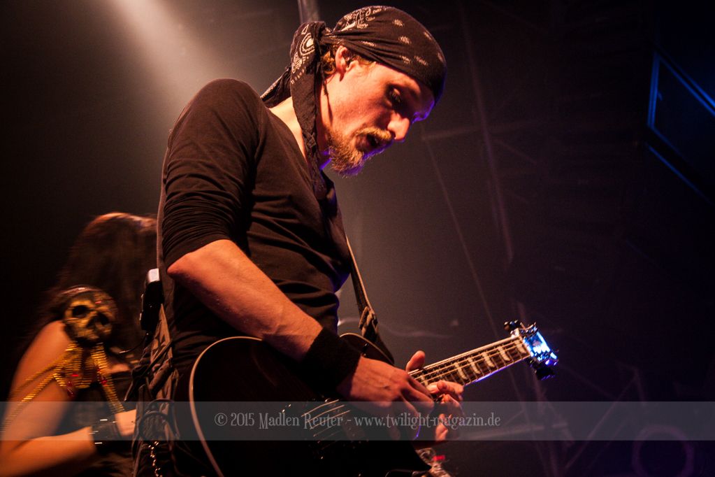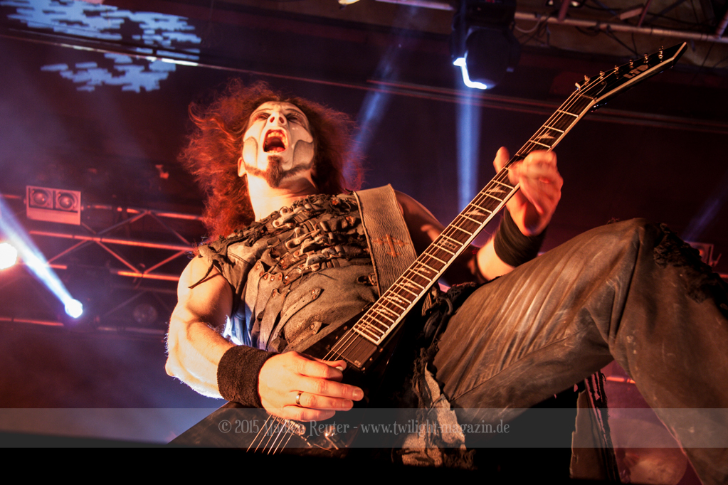 Nach kurzem Umbau wurde es dann Zeit für einen kurzen Ausflug nach Ravenhead. ORDEN OGAN übernahmen das Ruder und heizten den Anwesenden fleißig ein. Neben beeindruckenden Soli, fetten Riffs und brachialen Mitgröhlhymnen bestach die Band auch durch ihren Humor. Sänger Seeb erntet für seine lustigen Ansagen mehrfach Applaus. Auch sonst ist das Publikum fleißig dabei. Zwar brauchen die Besucher meist eine kurze Aufforderung, aber dann läuft es auch wie geschmiert. Die Setlist schien vor allem einen Schwerpunkt auf das neue Album („Ravenhead“, 2015) gesetzt zu haben. Grandios war es „Sorrow Is Your Tale“ live zu erleben, auch wenn mir „To New Shores Of Sadness“ eindeutig gefehlt hatte. Während vor der Bühne die Haare flogen, zockten Tobi und Seeb beeindruckende Soli auf ihren Gitarren. Dieses Teamspiel ist wirklich herrlich mit anzusehen. Und auch an diesem Abend fand sich wieder eine verirrte Seele, die mit lautstarken „Noch Ein Bier“-Rufen Aufmerksamkeit erhaschen wollte. Einzig richtige Reaktion vom Ordensoberhaupt: „Falsche Band man!“. Damit hatte sich die Geschichte für den restlichen Abend erledigt – Vielen Dank!