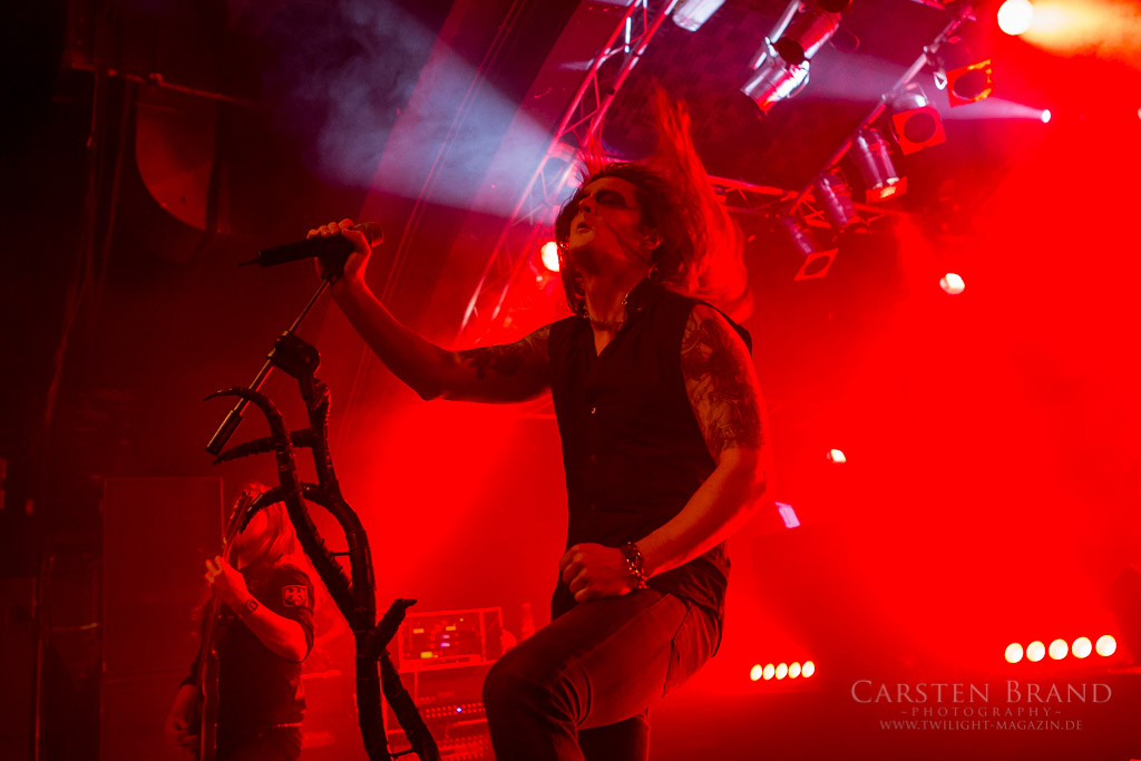 Zeit für den Headliner, der nach doch etwas längerem Warten auf die Bühne kommt. Das Licht geht aus, Nebelschwaden steigen empor und aus dem Dunkel betreten Frost und Co die Bühne. SATYRICON geben von Beginn an Vollgas und hinterlassen ein Schlachtfeld ohnegleichen. Nach kurzem Intro geht es mit "The rite of our cross" gleich dermaßen zur Sache. Die Markthalle hat sich noch einmal bedeutend gefüllt, und die Fans feiern frenetisch den Auftakt des Headliners. "Now, Diabolical" und "Black crow on a tombstone" bilden die Highlights im ersten Teil der Show. Auch im zweiten Teil widmen sich die Herren eher neueren Werken, besonders hervorzuheben sind "A new enemy" und "Tro og kraft". Als kleines Highlight ist im zweiten Teil auch der bereits im Netz vorveröffentlichte Track "Die by my hand" mit dem Norwegischen Nationalchor zu erwähnen. Satyr kündigt diesen mit vollem Stolz an und präsentiert ein sehr gelungenen Mix aus klassischem Orchesterchor und Black Meta l Band. Der Chor wird hierbei nur von Platte abgespielt. Die DVD "Live at the Opera" gibt es zudem im besonderen, limitierten Mediabook exklusiv am Merchstand zu erwerben.