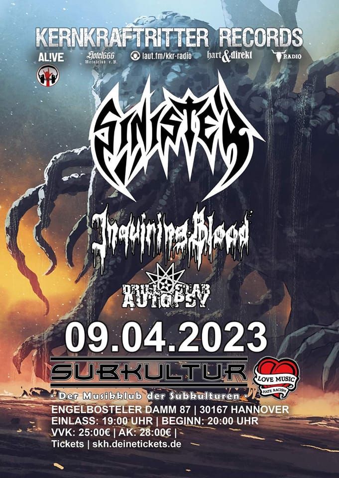 Sinister, Inquiring Blood, Drill Star Autopsy, Subkultur, Hannover, 09.04.2023