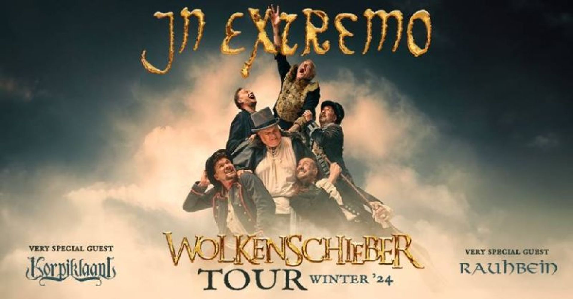 Mit der „Wolkenschieber“-Tournee werden In Extremo nicht nur ihr ungeduldig erwartetes neues Album auf live vorstellen, sondern mit ihrer schnell ins Blut gehende Mixtur aus packenden Party- und Trinkliedern, kämpferischen Freiheitssongs und berührenden Balladen wieder für neuen Mut, Hoffnung und jede Menge guter Laune sorgen!