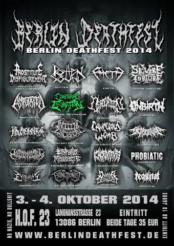 Alle weiteren Infos zum wohl derbsten deutschen Indoor Event mit extrem fairen Preisen und dufter Stimmung findet ihr unter https://www.facebook.com/pages/Berlin-Deathfest/372680962816343?sk=timeline oder http://www.berlindeathfest.de. Da könnt ihr euch auch gleich Tickets für schlappe 35€ sichern.