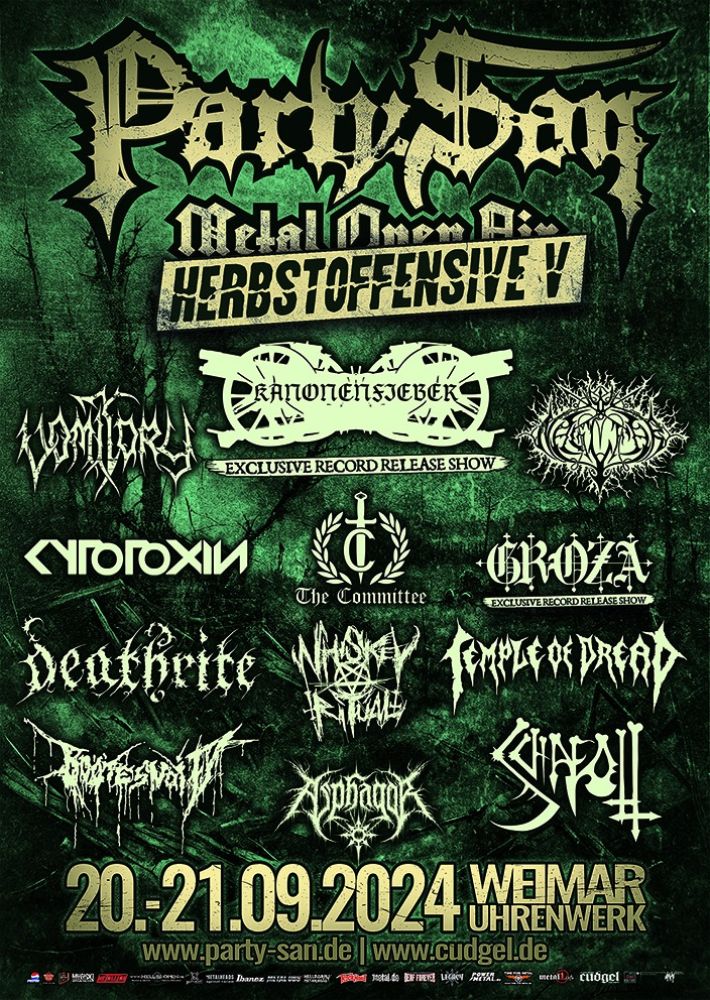 Dabei sind u. a. NAGLFAR und VOMITORY, DEATHRITE und CYTOTOXIN, während GROZA und KANONENFIEBER ihre Release-Parties im Rahmen der Herbstoffensive feiern werden.