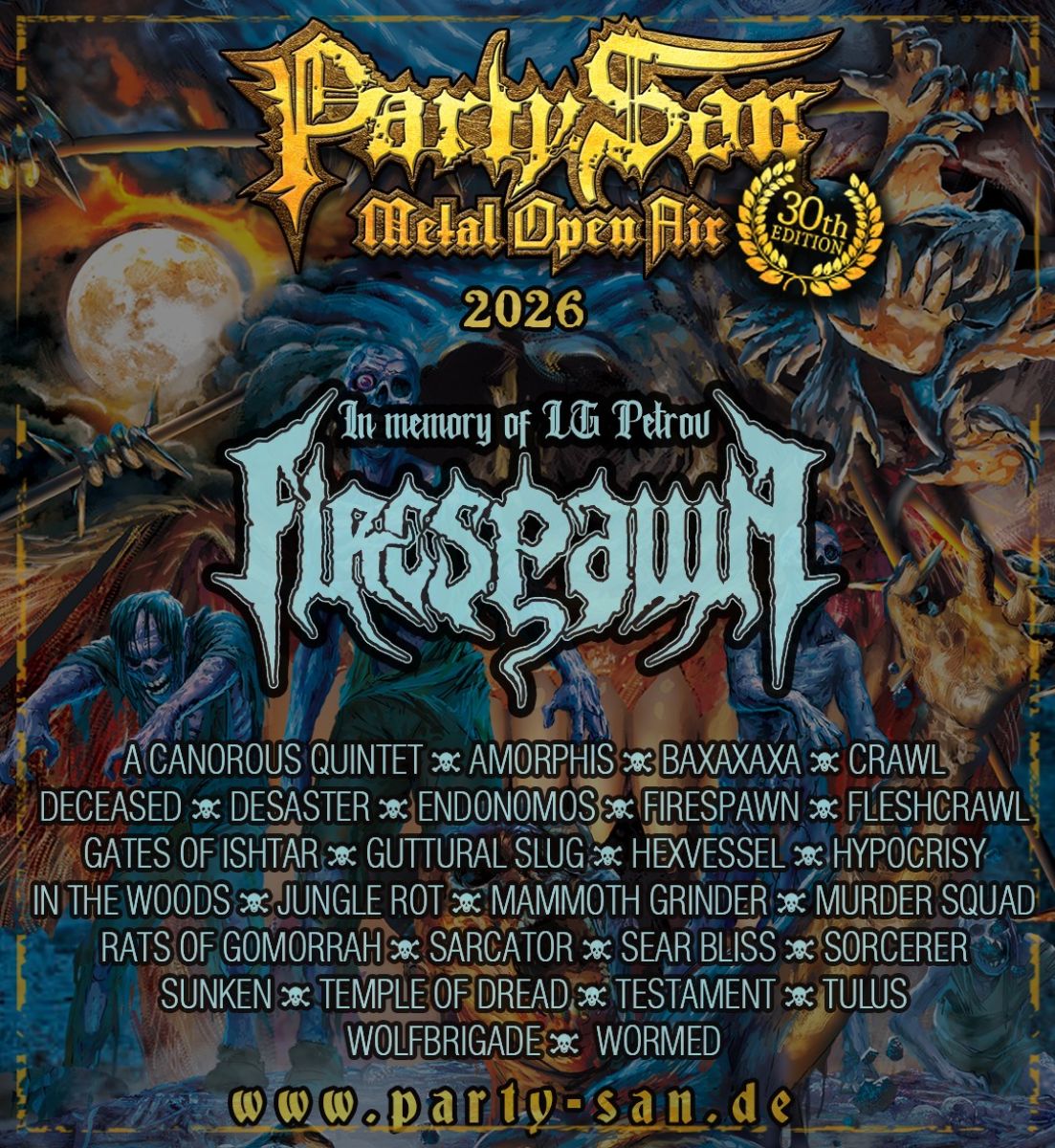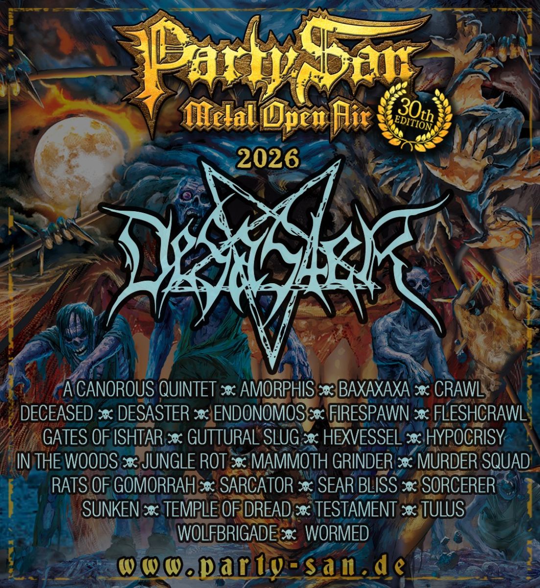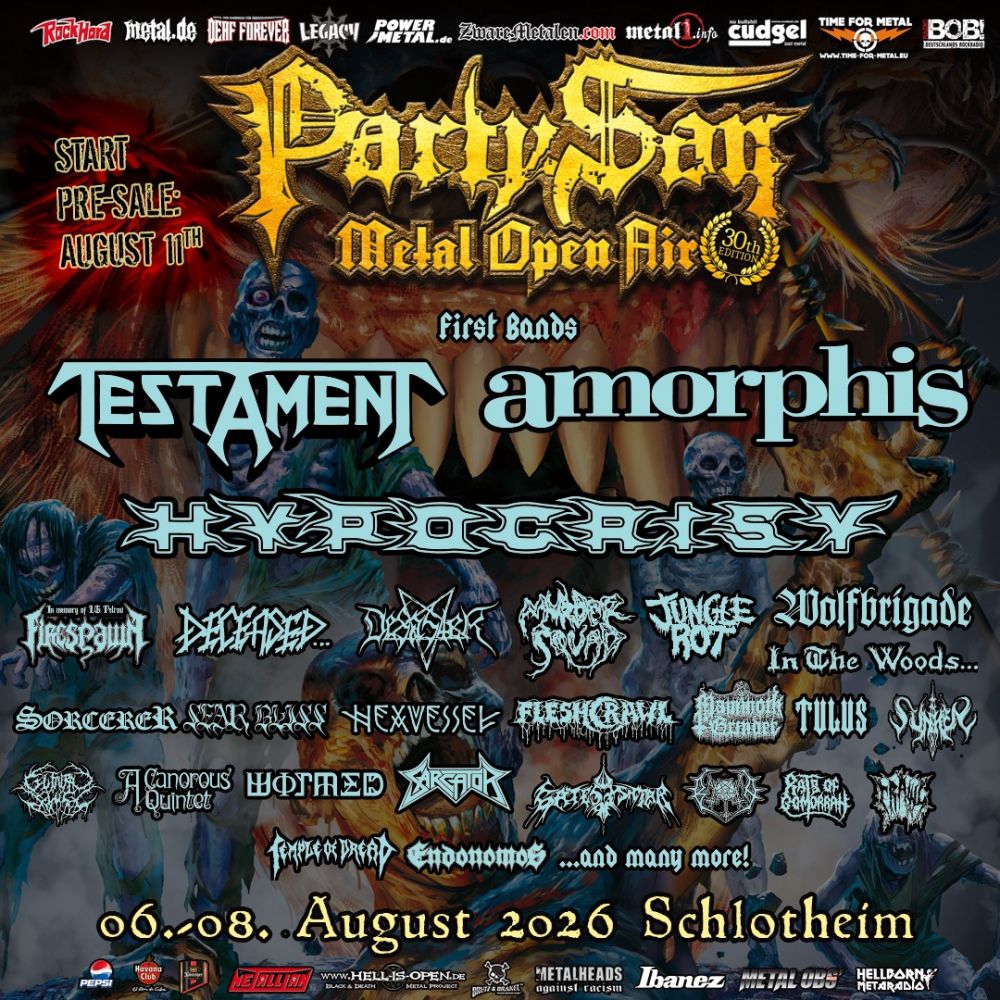 Das Party.San Metal Open Air findet im kommenden Jahr vom 06.-08.08.2026 wie immer auf dem Flugplatz Obermehler in Schlotheim/Thüringen statt.