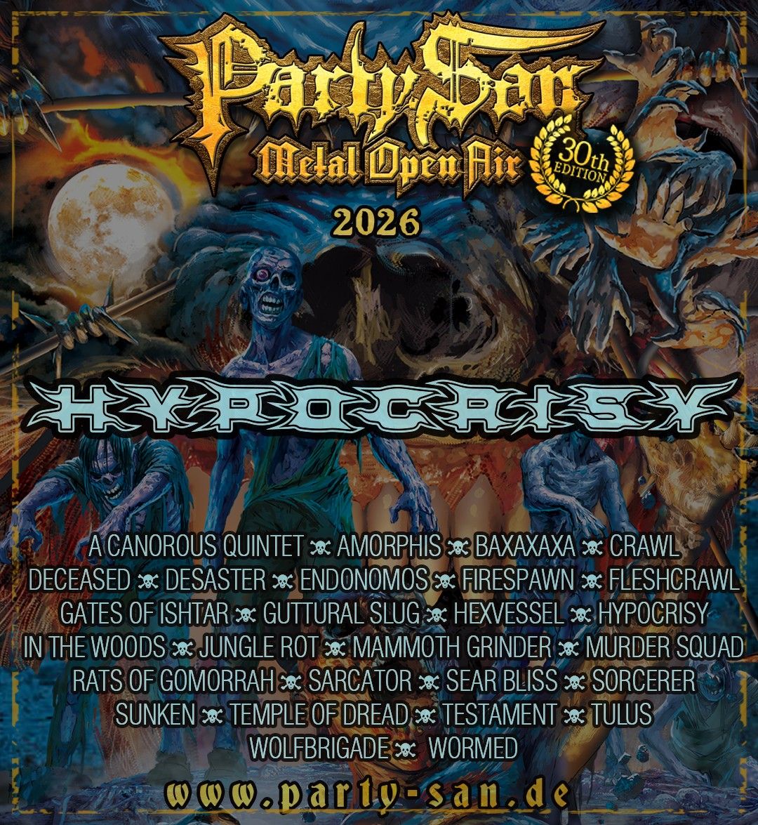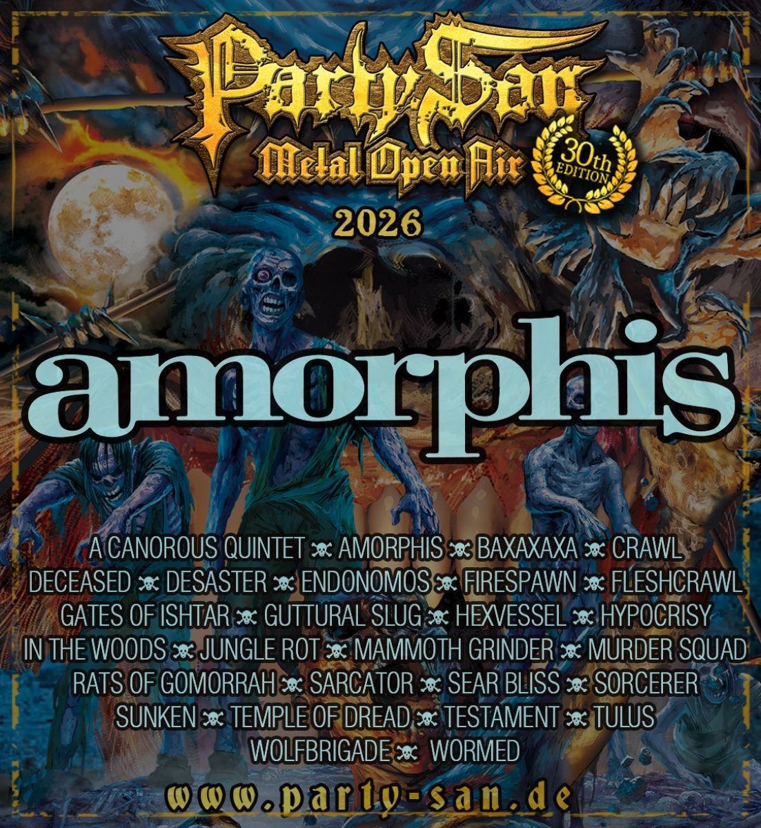 Mit Amorphis, Testament und Hypocrisy stehen schon drei amtliche Headliner fest. Darüber hinaus sind aber auch ein paar exklusive Undergroundgrößen, wie z. B. Tulus, Desaster, Gates Of Ishtar, In The Woods, Wolfbrigade, Hexvessel oder aber auch Deceased oder Murder Squad am Start.