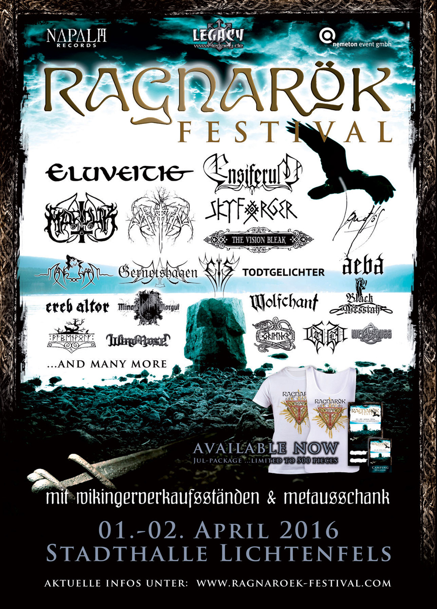 Diese Beschreibung meint natürlich das kleine, beschauliche Ragnarök Festival in Lichtenfels. Als eines der ersten 2-Tagesfestivals im Jahr kommen hier vor allem die Fans von Underground Bands auf ihre Kosten. Circa 4000 Besucher zieht es Anfang April in das beschauliche Städtchen, um das erste Festival Highlight im Jahr zu begrüßen.
