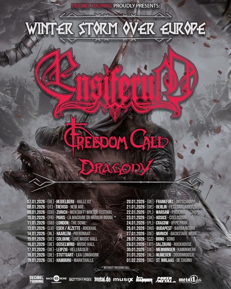 Doch wir brechen nicht allein zu dieser epischen Reise quer durch Europa auf. Es ist uns eine Ehre, Freedom Call und Dragony an unserer Seite zu haben. Gemeinsam werden wir sicherstellen, dass jede Nacht ein Fest in Valhalla wird!“ – ENSIFERUM