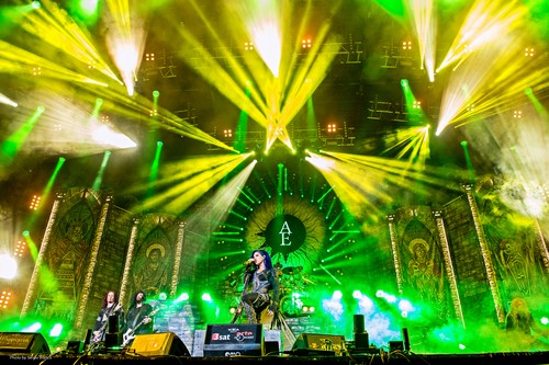 „As the Stage Burns“ ist nun die erste Gelegenheit Frontfrau Alissa White-Gluz in angemessener Weise in auf Livekonserve vorzustellen. Die Kanadierin löste bekanntlich 2014 Sängerin Angela ab und brüllte dann bereits das „War Eternal“ Album ein.